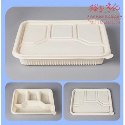 一次性淀粉基环保餐盒 单层带盖分割长方形 四个 4G-02 200套/箱 单位:个 SKU:YZB100220