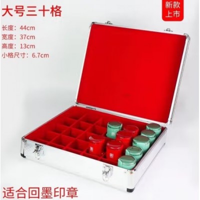 公章盒子收纳盒铝合金手提多功能财务印鉴章印章箱印章收铝合金财务印章箱(大号三十格)