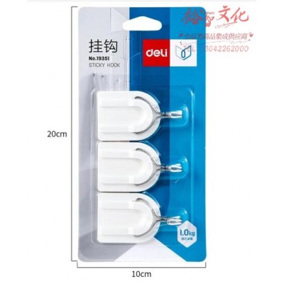 得力(deli)强力粘胶挂钩 挂衣钩 厨房浴室墙壁免钉门后挂衣钩 19351 3只/卡 10卡起售SKU:yzwhyp815252