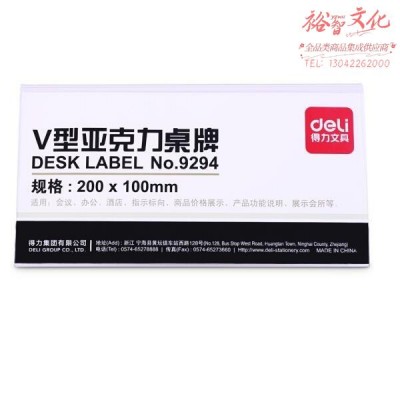 得力 9294 V型亚克力桌牌 透明SKU:yzwhyp815431