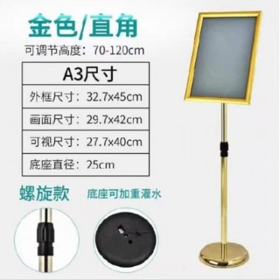 立牌指示牌立式广告牌水牌展示架 不锈钢展示牌(A3金色直角)