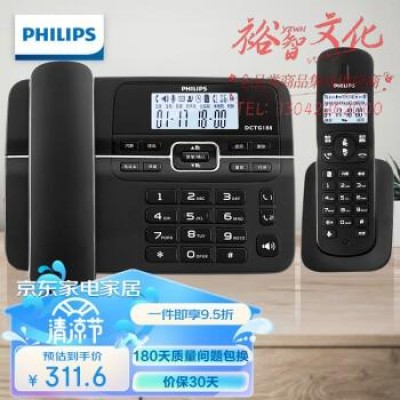 首页 > 广播、电视、电影设备 > 组合音像设备 > 会议、广播及音乐欣赏系统 > 飞利浦 PHILIPS 数字无绳电话机 无线固定座机电话子母机办公家用 一键拨号/电话本 DCTG188一拖一 黑色SKU:yzwhyp816122