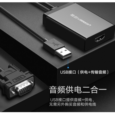 首页 > 信息化设备 > 数据线 > 绿联 VGA转HDMI转换器带音频 vga公转hdmi母高清视频转接线 40264