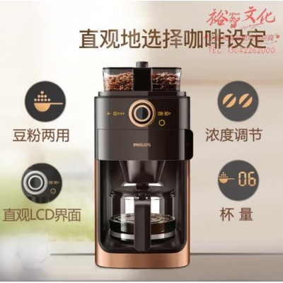 飞利浦(PHILIPS)美式咖啡机 家用磨豆机 豆粉两用 磨粉机 双豆槽带预约功能自动清洗咖啡壶金属棕HD7762/70SKU:yzwhyp816360