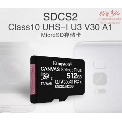 首页 > 办公设备 > 镜头及器材 > 金士顿(Kingston)512GB TF(MicroSD) 存储卡 U3 A1 V30 手机内存卡 读速100MB/s 写速85MB/s SDCS2/512GBSPSKU:yzwhyp816738