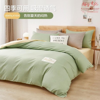 博洋(BEYOND) 博洋家纺四件套全棉纯棉床单被套纯色床上用品学生宿舍春秋套件 漫语(绿黄) 1.8米床(被套220*240厘米)SKU:yzwhyp817025