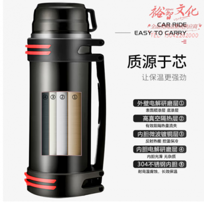 富光拾喜 ZB007保温壶户外大容量水壶男车载旅行壶不锈钢运动壶2L 黑色升级款