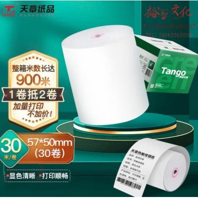 首页 > 纸及纸质品 > 纸及纸板(不包含复印纸) > 天章(TANGO)新绿天章热敏纸打印纸收银纸57*50小票纸美团外卖超市餐饮收银机58mm打印机纸30米/卷30卷无管芯SKU:yzwhyp817071
