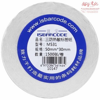 谊宝 50*30mm*1500张 三防热敏标签纸 不干胶条码纸 电脑打印贴纸 2卷/箱SKU:yzwhyp817086