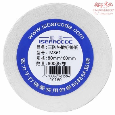 谊宝 80*60mm*800张 三防热敏标签纸 不干胶条码纸 电脑打印贴纸 2卷/箱SKU:yzwhyp817087