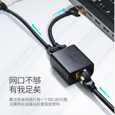 绿联 网线分线器一分二同时上网连接器 RJ45双网口延长器网络三通直通转接头 iptv宽带接口分接器 RJ45一分二网线连接器 黑色