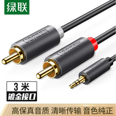 绿联3.5mm转双莲花头音频线一分二 红白2RCA连接线 手机电脑电视连接音响箱功放转换线3米10512