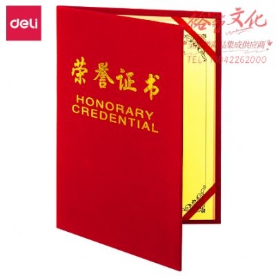 得力7578荣誉证书(荣光)(红)-12K(本)SKU:YZB100443