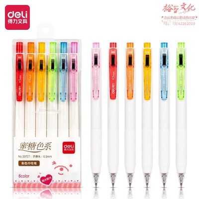 得力33727蜜糖色学生按动中性笔0.5mm子弹头(混)(6色/PET盒)SKU:yzwhyp817380