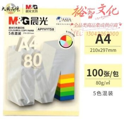 首页 > 纸及纸质品 > 纸及纸板(不包含复印纸) > 晨光A4彩色打印纸 APYVYT58(5色混装)100张/包SKU:YZB100613
