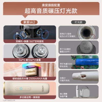 索爱(soaiy)话筒音响一体自带声卡k歌麦克风家庭ktv音响套装无线蓝牙音箱唱歌神器一体式儿童卡拉OK设备SK2AI
