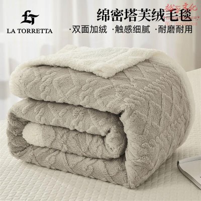 La Torretta法兰绒毛毯 超柔羊羔绒毯子单双人被秋冬加厚午睡毯沙发毯 米杏色SKU:yzwhyp817693