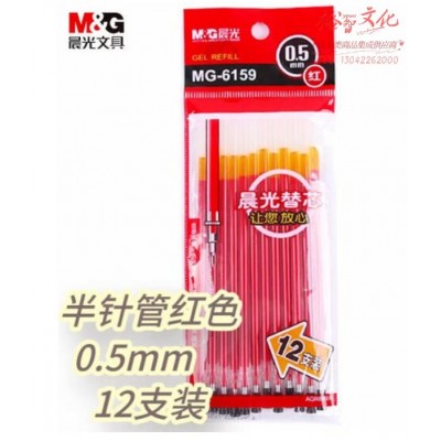 晨光(Mamp;amp;G)文具红色0.5mm半针管中性笔芯 签字笔替芯 经济型水笔芯 12支装MG6159SKU:yzwhyp817972