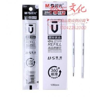晨光文具2007优品高品质按动笔芯U-5按动中性替芯0.5mm 1盒12支SKU:yzwhyp818008