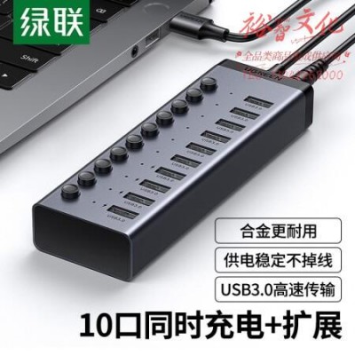 绿联CM482 USB3.0分线器 高速10口拓展坞HUB集线器一拖十转接头转换器延长线带电源适配器 1米 30779SKU:yzwhyp818179