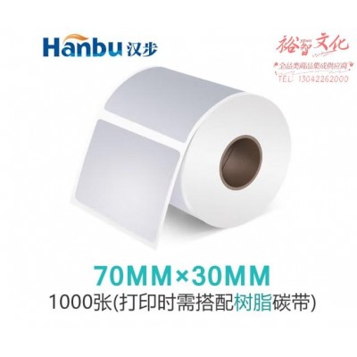首页 > 纸及纸质品 > 纸及纸板(不包含复印纸) > 汉步 哑银pet标签纸 70mm*30mm*1000枚单排 亚银不干胶条码打印纸SKU:yzwhyp818271