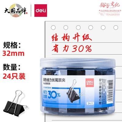 得力(deli)24只32mm省力黑色长尾夹 3#中号 8563SSKU:yzwhyp818300
