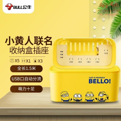 公牛(BULL)小黄人联名 USB新国标收纳盒延长线插座/插线板/插排6位 3USB 全长1.5米GN-F2151USKU:yzwhyp818643