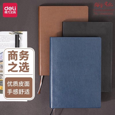 得力(deli)复古商务经典皮面本笔记本子 加厚软面会议记事本日记本办公用品文具 25K120张 黑色 22264SKU:yzwhyp818660
