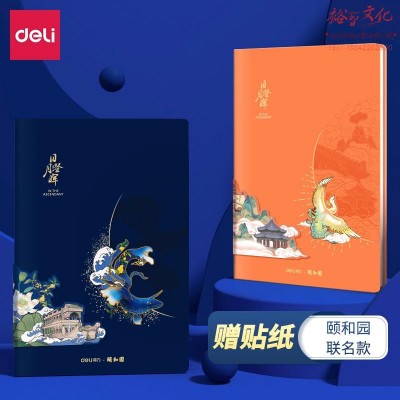 得力(deli) 25K120张颐和园系列皮面本 记事本工作笔记本子文具办公用品手账本 日月澄晖款 橙色 22265SKU:yzwhyp818661
