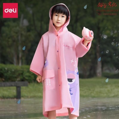 得力(deli)卡通儿童雨衣 男女童小学生斗篷式雨披 幼儿园宝宝小孩防水雨衣带书包位 卡通小怪兽-粉色S 16543SKU:yzwhyp818674
