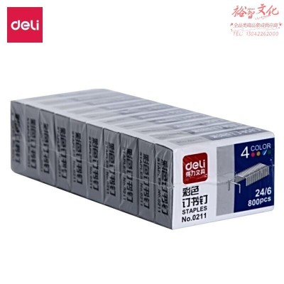 得力 (deli)24/8加厚订书钉/订书针 得力0211彩色订书钉12#混800枚/盒*10SKU:yzwhyp818728
