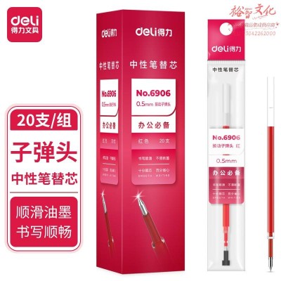 得力 deli 6906 中性笔芯0.5MM弹簧头(红)(20支一组)SKU:yzwhyp818731