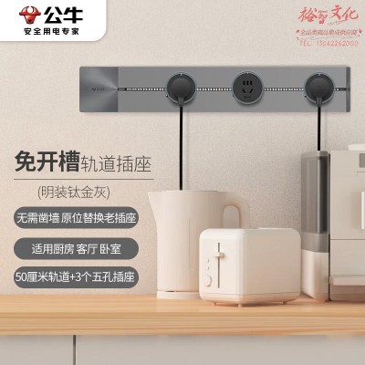 公牛(BULL)明装 轨道插座 可移动墙壁插座壁挂式免打孔 50厘米轨道 3个五孔插座灰色SKU:yzwhyp818769