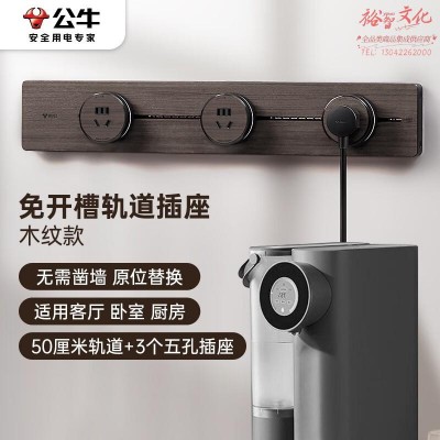 公牛(BULL)明装 木纹轨道插座 可移动墙壁插座壁挂式50厘米轨道 3个五孔插座木纹SKU:yzwhyp818771
