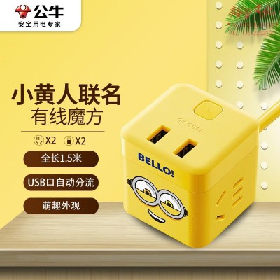 公牛(BULL) 小黄人联名 魔方USB插座 插线板/插排/排插/接线板 2孔 2USB口 全长1.5米 GNV-M112RSKU:yzwhyp818782