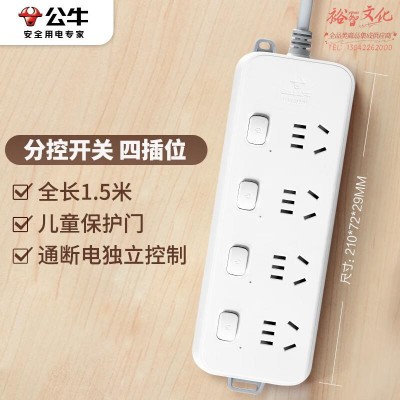 首页 > 建筑建材 > 开关插座 > 公牛(BULL)分控插座/插线板/插排/排插/接线板/拖线板 GN-B3043 4位分控全长1.5米 独立开关SKU:yzwhyp818785