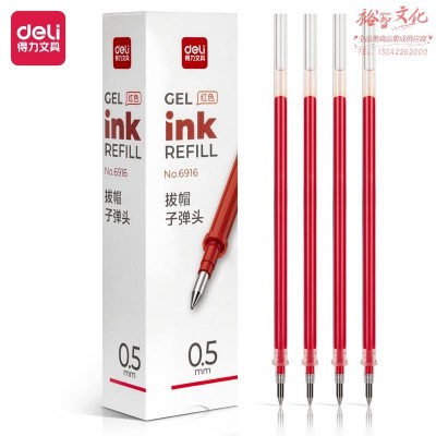 得力(deli)6916 0.5mm红色中性笔笔芯 子弹头水笔签字笔替芯 20支/盒SKU:yzwhyp818923