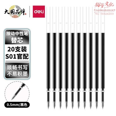 得力(deli)s782 0.5mm按动中性笔芯替芯 S01 K35用 黑色子弹头20支/盒SKU:yzwhyp818925