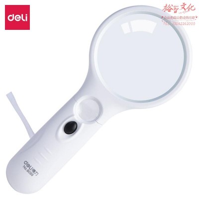 得力(deli)LED灯2.5倍高清阅读放大镜 Ф70mm/Ф22mm双镜片 白色SKU:yzwhyp818997