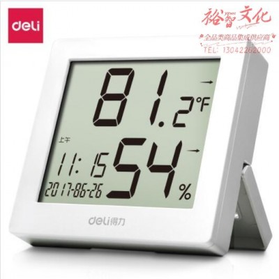得力(deli)LCD带时间闹钟电子温湿度计 白色8813SKU:yzwhyp819036