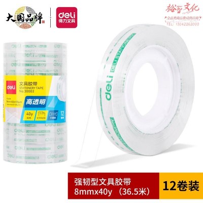 得力(deli)透明办公文具胶带 强韧型 8mm*40y(36.6m/卷) 12卷/筒SKU:yzwhyp819094