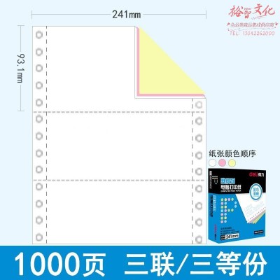 得力(deli)N241-3(1/3C) 塞纳河电脑打印纸 三联三等分 彩色不撕边SKU:yzwhyp819160