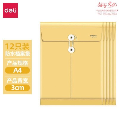 得力(deli)12只A4防水档案袋 PP材质耐折文件袋 复古黄5910SKU:yzwhyp819166