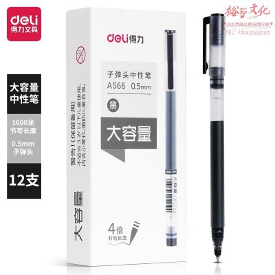 得力(deli)大容量中性笔签字笔 0.5mm子弹头12支/盒A566黑SKU:yzwhyp819207