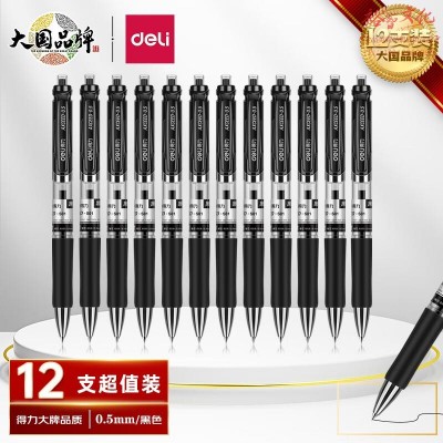 得力(deli)S01中性笔签字笔 0.5mm子弹头经典办公按动笔水笔 黑色 12支/盒SKU:yzwhyp819208