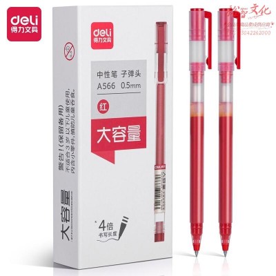 得力(deli)0.5mm子弹头大容量中性笔 红色 12支/盒A566SKU:yzwhyp819212