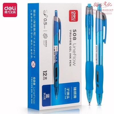 得力(deli)按动中性笔签字笔 0.5mm子弹头 12支/盒S08蓝SKU:yzwhyp819221