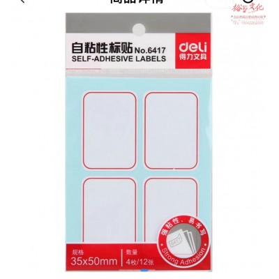 得力(deli)6417自粘性标贴(35*50mm白色)(包)SKU:yzwhyp819341