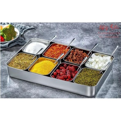 不锈钢调料盒 三格 托盘 勺子SKU:yzwhyp819360