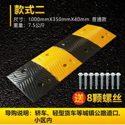 加厚公路道路坡道铸钢减速带橡胶减速板交通线槽汽车台阶斜坡垫 橡胶减速带减速板(1000*350*40(带螺丝)